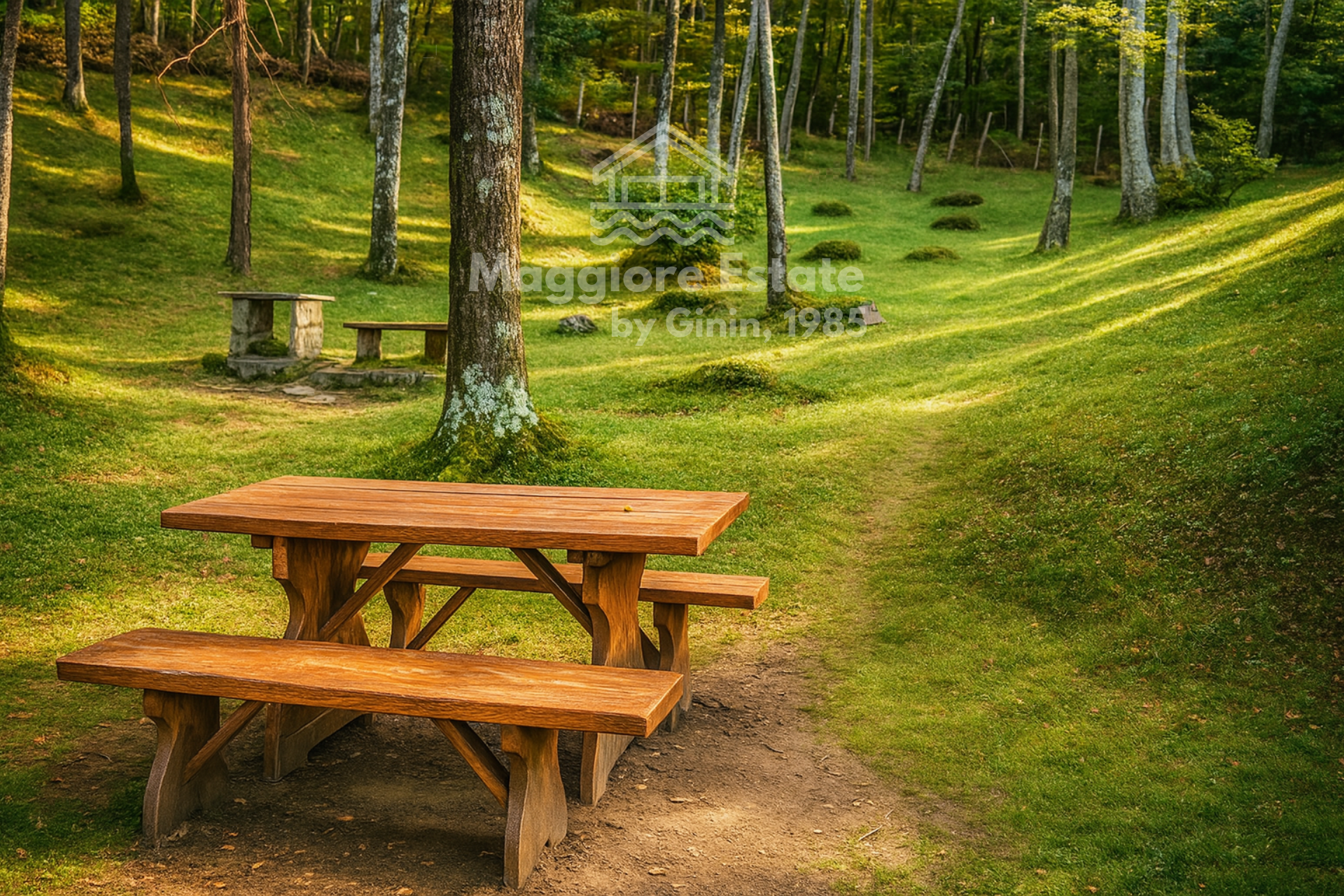 Un antico portone introduce a un incantevole patio privato con pavimentazione in legno — un’oasi perfetta per rilassarsi all’aperto o organizzare pranzi e barbecue nelle giornate di sole.